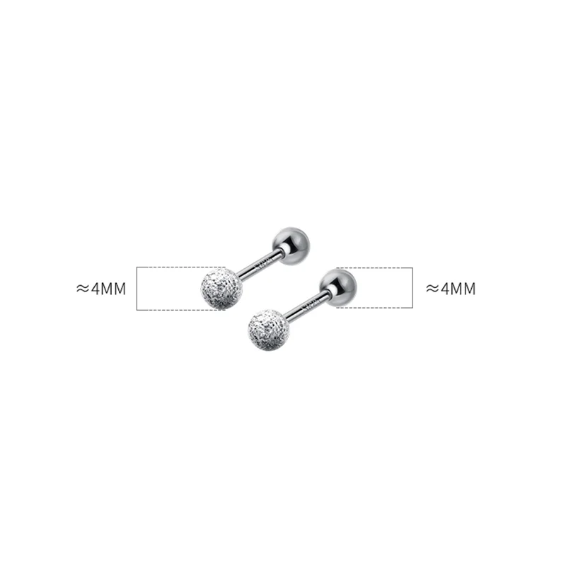 Silver Frosted Bead Thread Stud Earrings for Women – Minimalist Jewelry